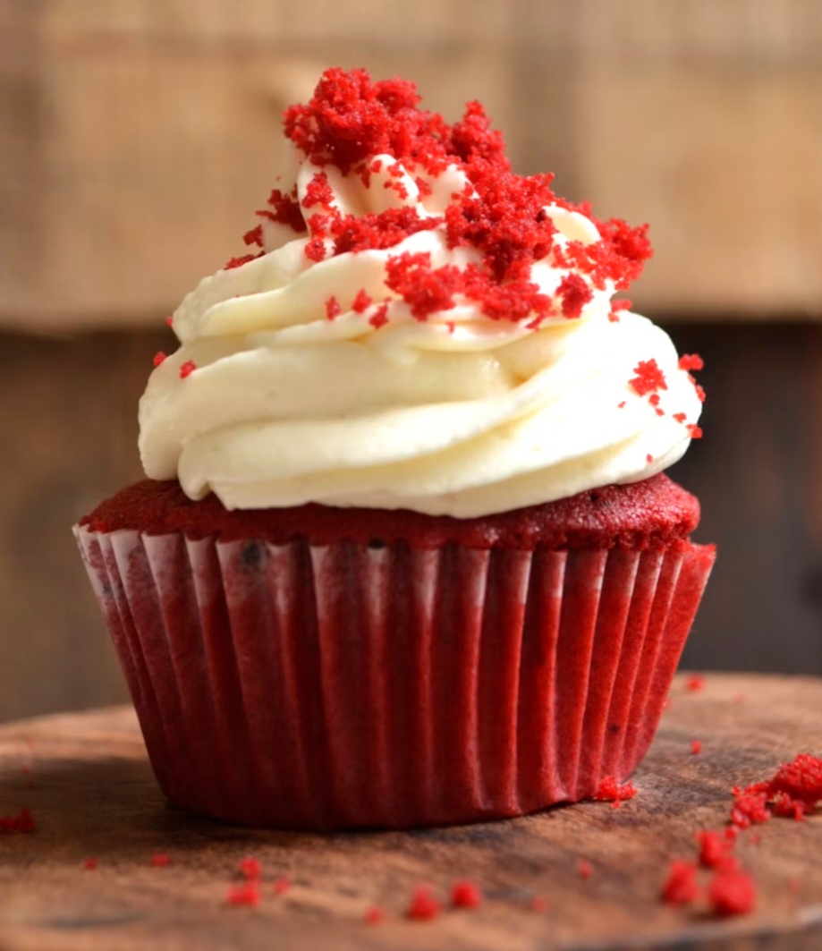 - Con le fruste montare il formaggio con il mascarpone, la panna e lo zucchero a velo fino a raggiungere la consistenza desiderata. Trasferire la crema in una sac à poche munita di beccuccio a stella e dressarla sui tutti i cupcake tranne uno che dovrà essere sbriciolato per realizzare la decorazione finale.