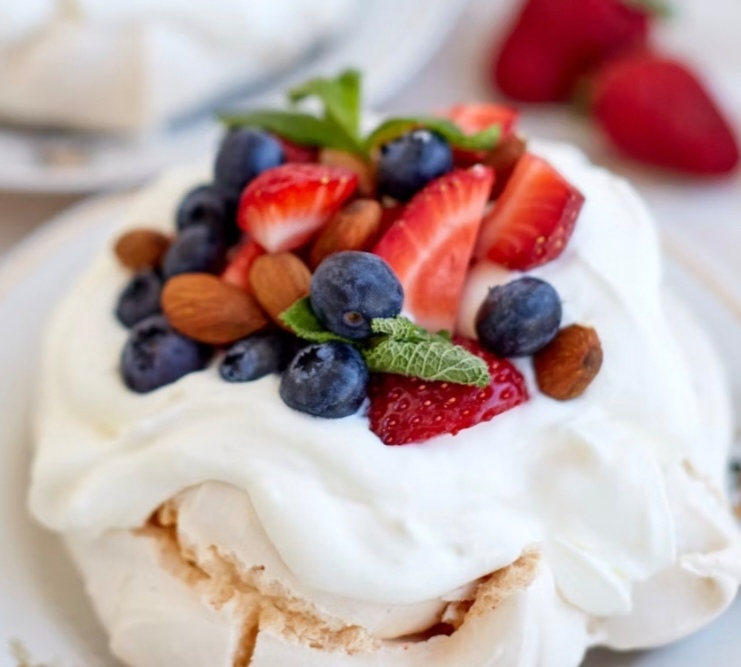 - Cuocere con il forno in modalità statica a 110° per 80 minuti, la pavlova deve rimanere bianca, leggermente crepata in superficie e umida all’interno, una volta pronta socchiudere la porta del forno e lasciarla raffreddare al suo interno.