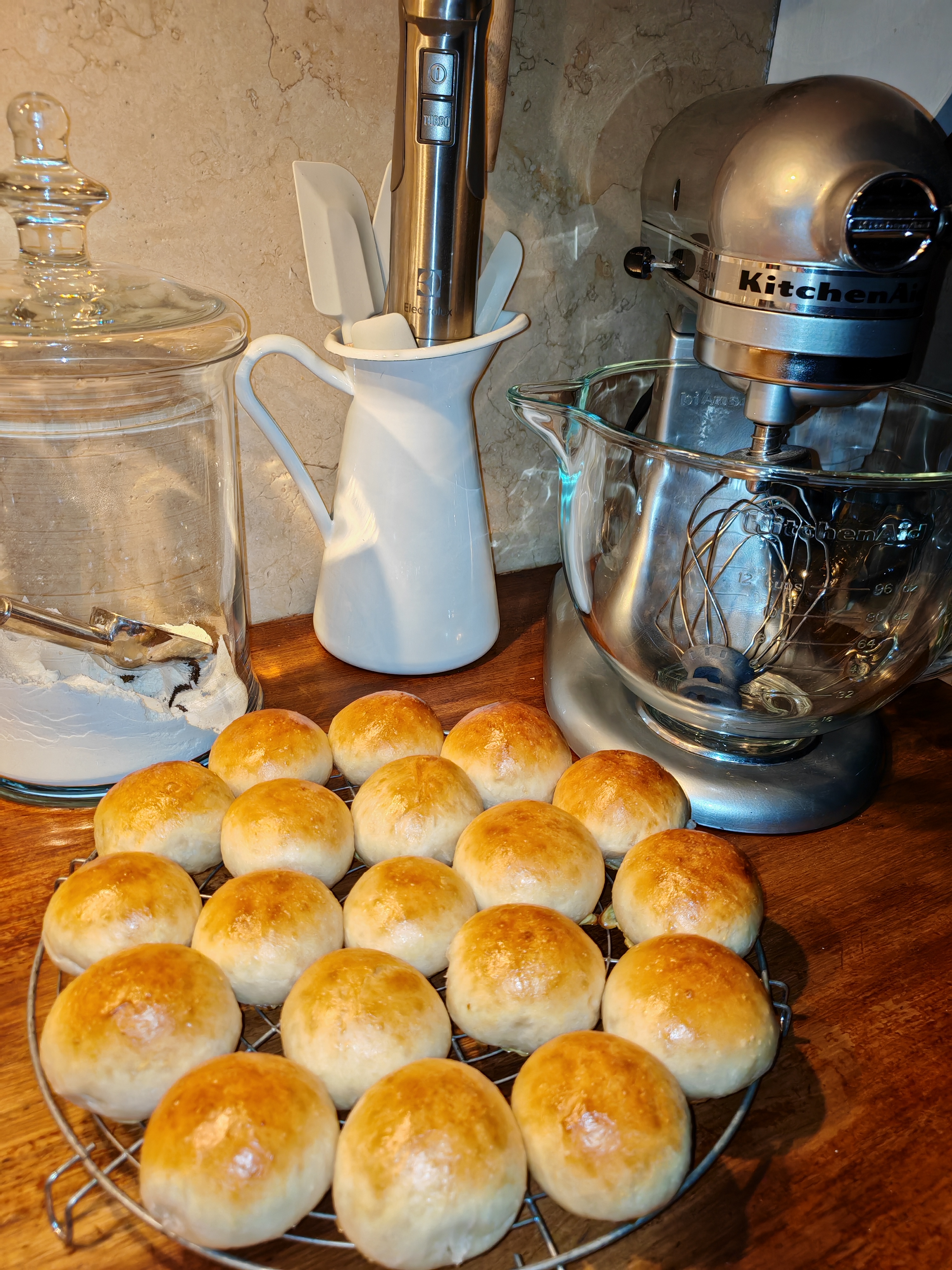 - Dividere l’impasto in 25 parti, lavorare ogni porzione per ottenere delle palline, disporre i panini su una teglia da forno e lasciarli riposare per un’altra ora.